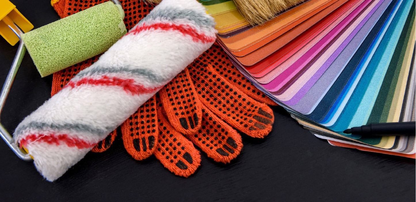 Pennelli, spatole, teli, nastri adesivi, lampade, scale…