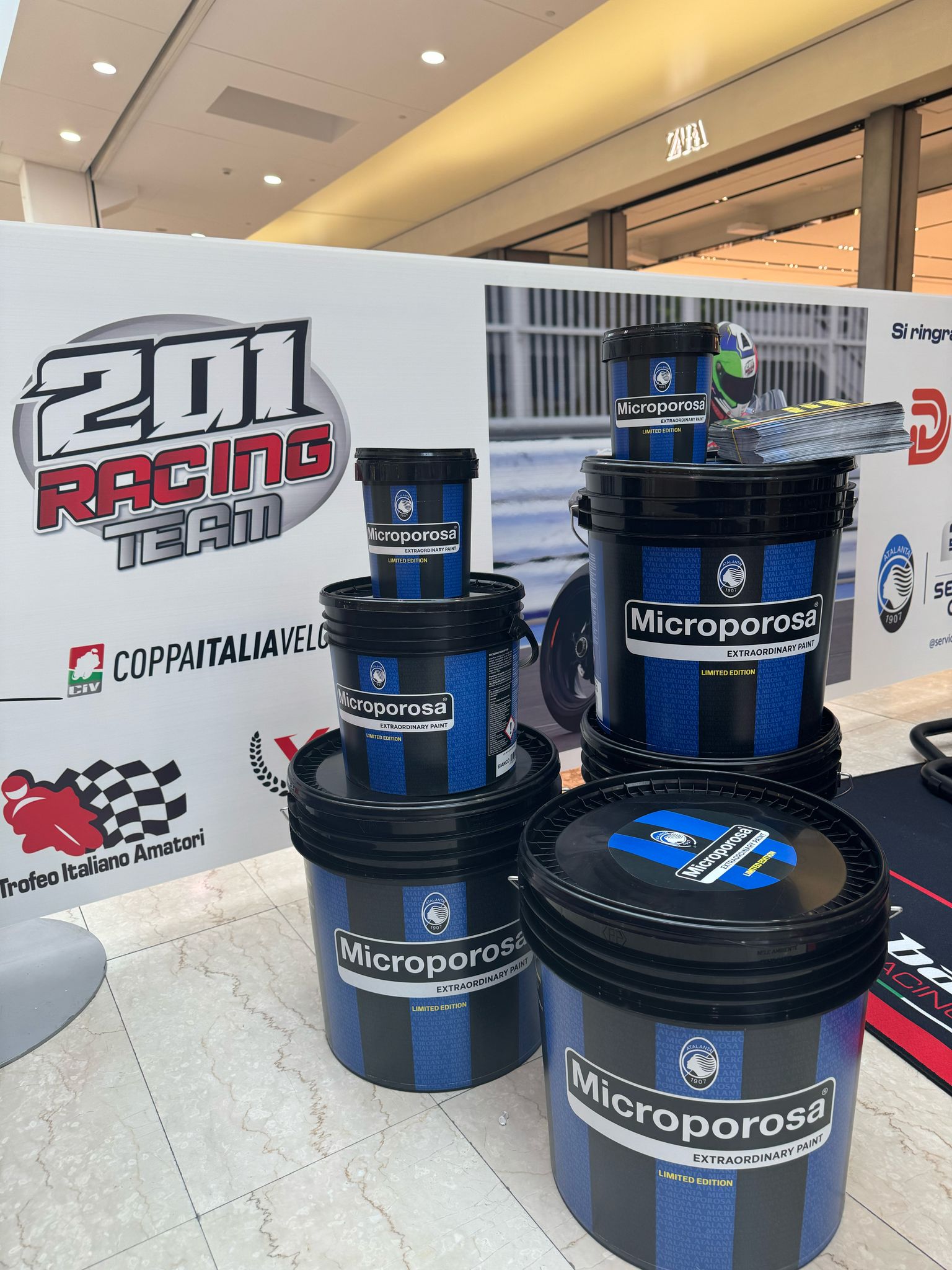 In esposizione anche le latte MICROPOROSA® LIMITED EDITION, la pittura ufficiale dell’ATALANTA — un vero tocco di stile per i tifosi nerazzurri!